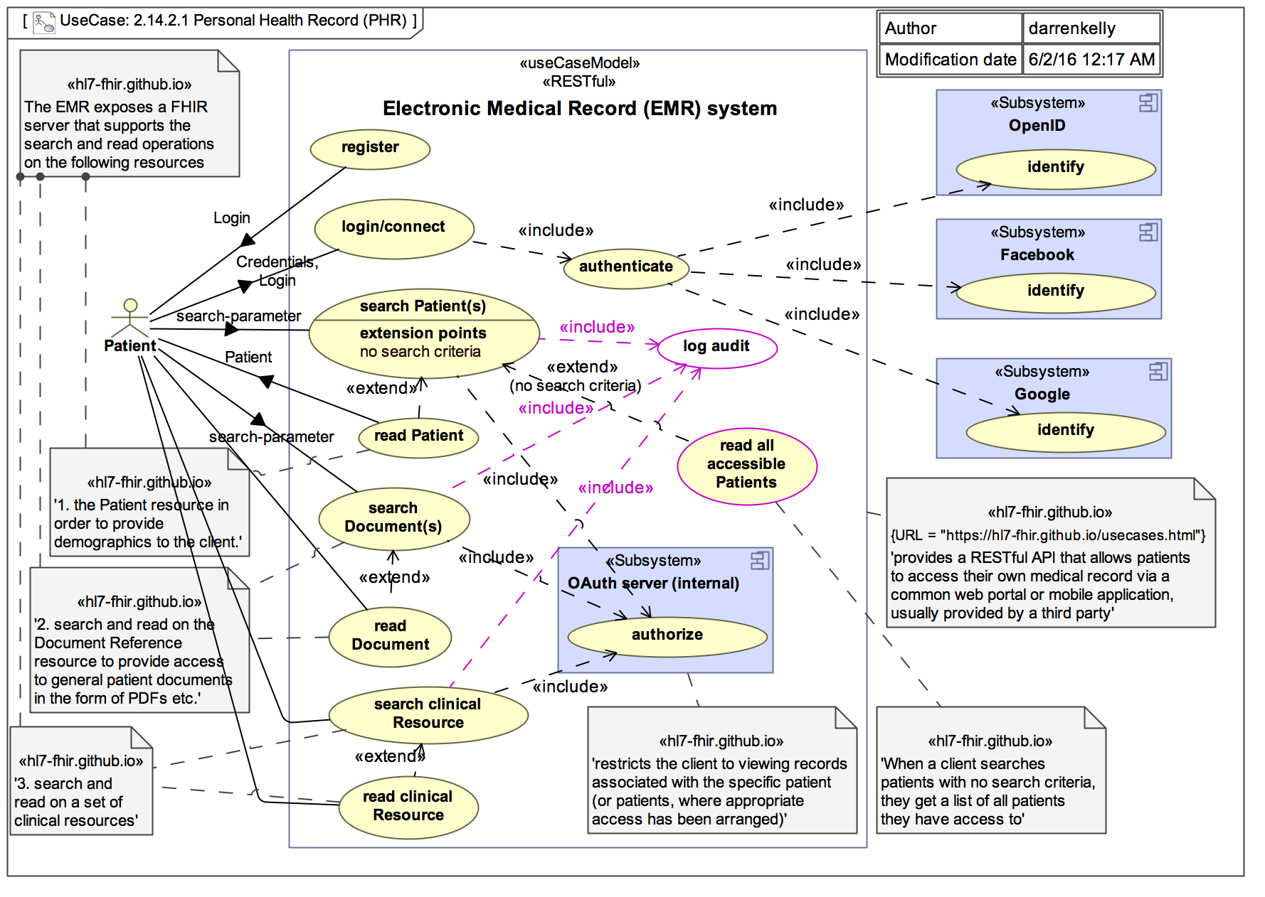The basic flow of the use case is that the patient registers (if required), logs in, enters search criteria to identify a patient or